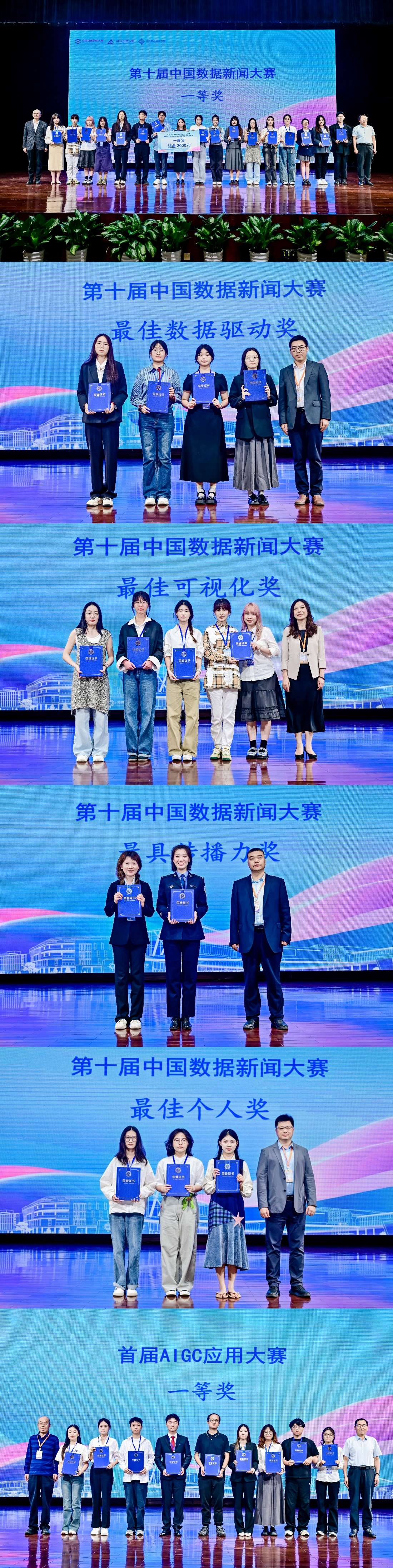 經過一天激烈精彩的答辯,在第十屆中國數據新聞大賽中,《文物從「活」到「火」:數說博物館文物煥新背後的文化自信》《「超值租賃」背後:一個精心構建的「串串房」陷阱》等30個作品榮獲一等獎;《數說高校課堂「水」循環》《招聘欄里,該有聽障者的聲音》等90個作品榮獲二等獎;《消費降級?探究!》《堅守還是突圍?城市化浪潮中鄉村教育的艱難抉擇》等106個作品榮獲三等獎,大賽還評選出優秀獎、最佳數據驅動獎、最佳可視化獎、最具傳播力獎、AIGC創作優勝獎。在首屆AIGC應用大賽中,《敦煌境中游》《種啟華夏,天下糧安》等10個作品榮獲一等獎;《孔子新「周遊列國」記》《烽火印記》等30個作品榮獲二等獎;《paintedsteps》《杏林夢——AI在湖北中醫藥大學》等35個作品榮獲三等獎。