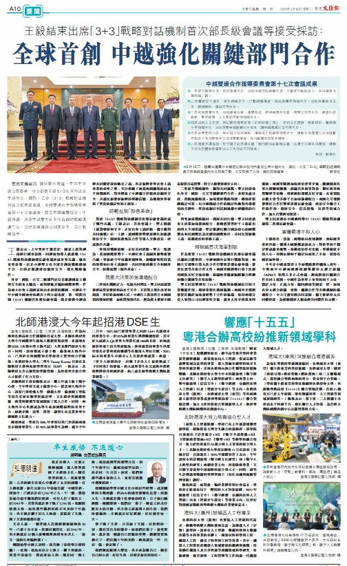 香港文匯報訊(記者 方俊明 珠海報道)國家「十五五」規劃綱要提出,健全高等教育學科專業設置調整機制,超常規布局人工智能、集成電路等新興領域急需學科專業,深入實施基礎學科和交叉學科突破計劃。多所香港與內地合作辦學院校積極響應,北師香港浸會大學今年本科擬新增「數字跨文化研究」「數字人文跨學科研究」兩專業方向,明年擬新增「信息安全」「數字經濟、金融科技與人工智能」以及「智能交互設計」等方向。香港科技大學(廣州)、香港城市大學(東莞)等也通過設立新學科專業或參與粵港高校「1+1+1」聯合資助計劃,加大力度培養複合型創新型人才,助建粵港澳大灣區國際科技創新中心。