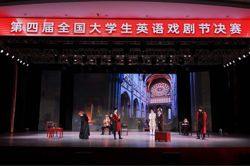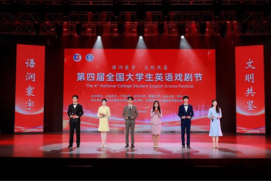 4月12日,第四届全国大学生英语戏剧节在四川外国语大学东区歌乐大礼堂举行。本届盛会以“语润寰宇·文明共鉴”为内核,感召了来自全国12所高等学府的精英剧组共赴重庆,以一台台精雕细琢的英语戏剧力作,在舞台上绽放出当代青年的艺术锋芒。