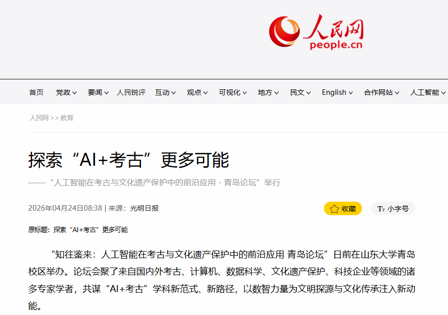“知往鉴来:人工智能在考古与文化遗产保护中的前沿应用 青岛论坛”日前在山东大学青岛校区举办。论坛会聚了来自国内外考古、计算机、数据科学、文化遗产保护、科技企业等领域的诸多专家学者,共谋“AI+考古”学科新范式、新路径,以数智力量为文明探源与文化传承注入新动能。