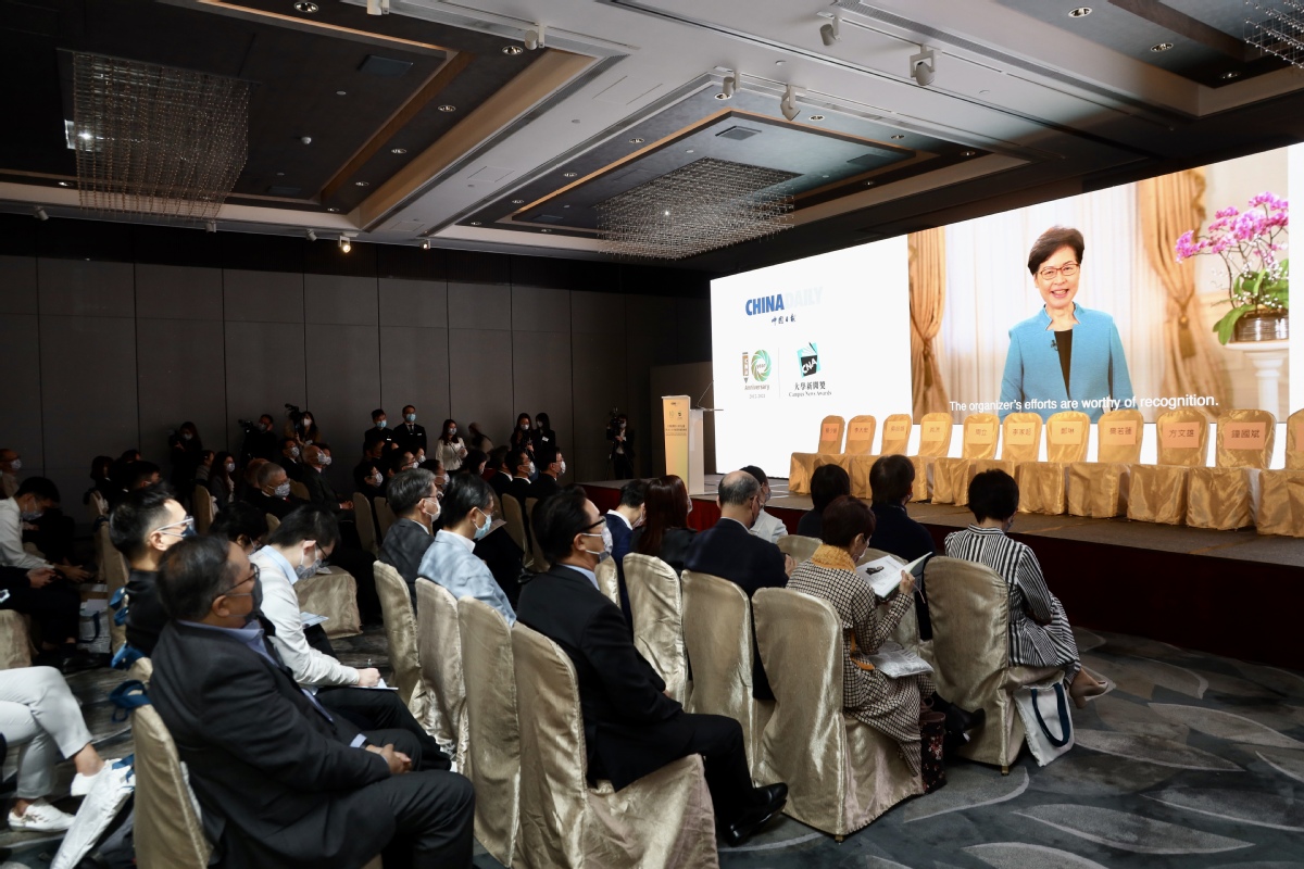香港特别行政区行政长官林郑月娥特别为颁奖活动预录视频贺词,她表示:“由中国日报(香港版)设立的大学新闻奖评选活动今年踏入10周年,在这个重要的里程碑,我对主办机构致以诚挚的祝贺。特别是过去两年,受新冠疫情影响,评选活动面对一些挑战,但在主办机构的努力下,克服了种种的困难,活动能顺利举行,为两岸四地的传媒学生提供了独一无二的互动交流平台,主办机构的努力值得肯定。”