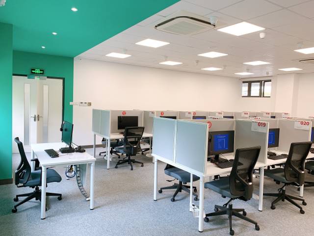 在UIC雅思机考考点内,设有20个机考考位、3间常用口语考试房间和1间备用口语考试房间,面积约250平方米。学校相关负责人介绍道,经升级调整,考前4天截止报名,考后3天即可拿到成绩,学生报名及考试的时间更加灵活和高效。