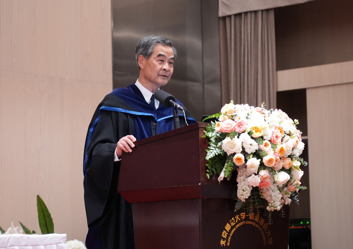 中國科學院院士、北師港浸大校長湯濤表示,梁振英先生心繫灣區、高瞻遠矚,多年來一直關注香港地區和大灣區內地城市的融合發展,這是梁振英先生第二次到訪北師港浸大,早在2011年2月,梁振英先生曾以「香港與珠江三角洲的經濟融合」為題在北師港浸大作專題演講。北師港浸大師資隊伍和管理人員中近百人來自中國香港,為大灣區教育融合發展和人才交流作出了積極的探索。