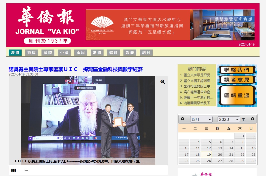 【記者陳藝珠海報道】四月十五至十六日,粵港澳大灣區人工智慧、區塊鏈與金融科技國際學術會議暨二0二三中國工業與應用數學學會(CSIAM)金融科技與演算法專委會年會在北京師範大學——香港浸會大學聯合國際學院(中文簡稱:北師港浸大,英文簡稱:UIC)舉辦。是次大會彙聚了諾貝爾經濟學獎得主、美國科學院院士Robert John Aumann,中國科學院院士張繼平、湯濤等五位中外院士,以及Adam Brandenburger教授、Abraham Neyman教授等五位世界級學術組織會士,聚焦粵港澳大灣區金融科技與數字經濟發展,共探人工智慧、區塊鏈與金融科技的交融與創新。線上線下逾一千八百人參與會議。此外,Robert John Aumann院士獲聘為UIC榮譽教授。