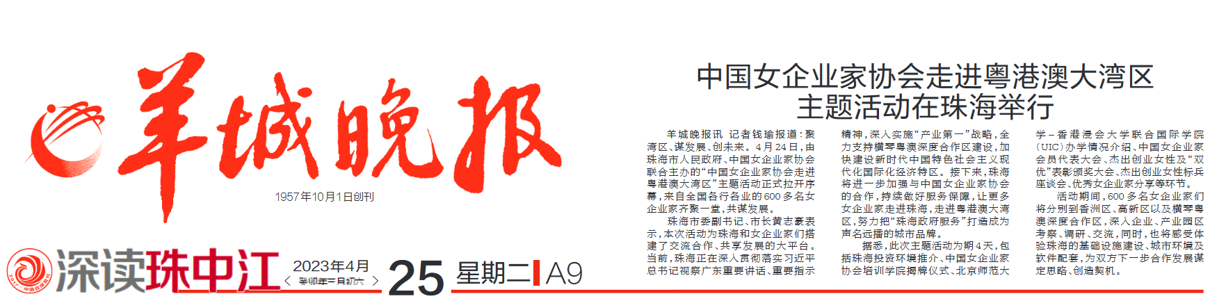羊城晚报讯记者钱瑜报道:聚湾区、谋发展、创未来。4月24日,由珠海市人民政府、中国女企业家协会联合主办的“中国女企业家协会走进粤港澳大湾区”主题活动正式拉开序幕,来自全国各行各业的600多名女企业家齐聚一堂,共谋发展。