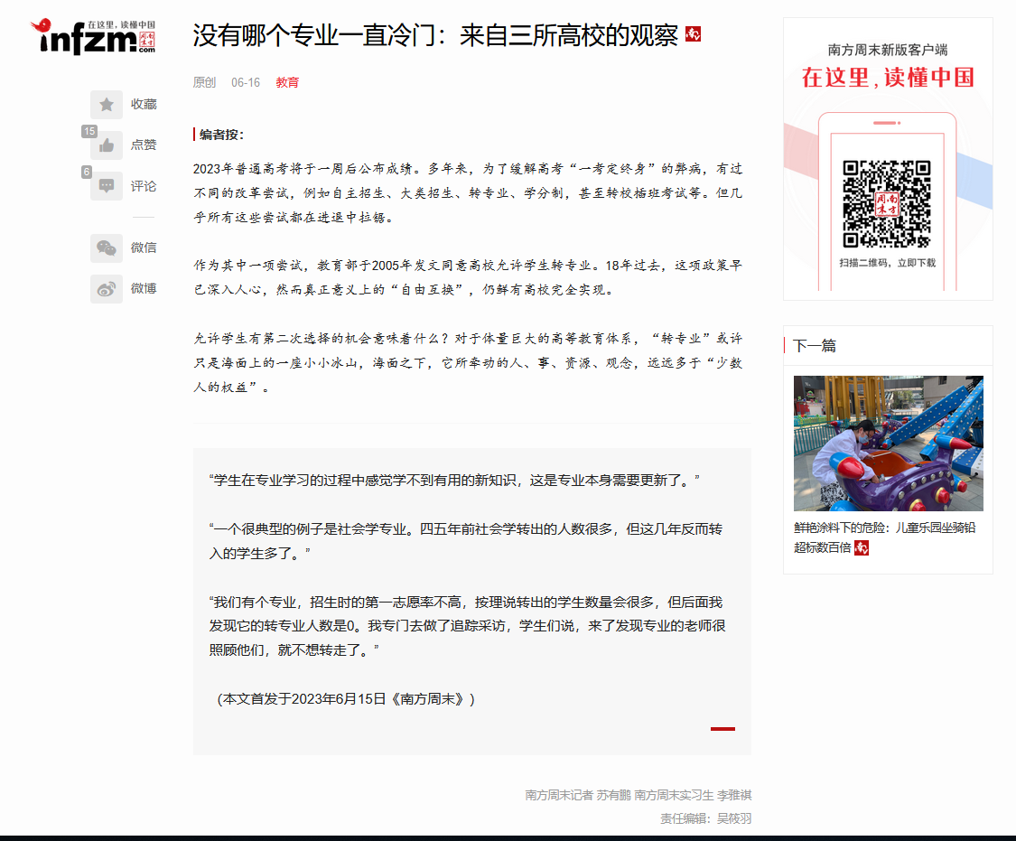 南方周末:坚持自由转专业这些年来,学校如何应对某些专业流出人数过多的问题?