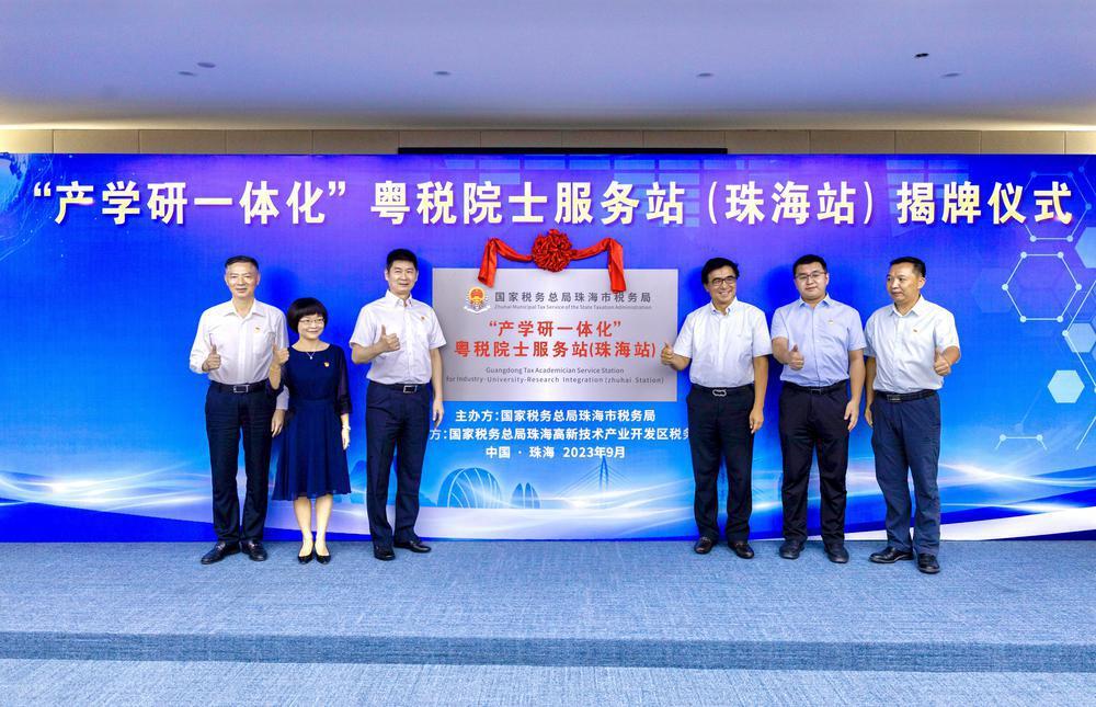 近日,“产学研一体化”粤税院士服务站(珠海站)启动仪式在珠海高新区税务局举行,中国科学院院士汤涛、中共珠海市委组织部副部长李腾东、珠海市税务局副局长黄燎原以及省税务局所得税处、珠海市科技创新局等相关领导嘉宾一同为粤税院士服务站揭牌。
