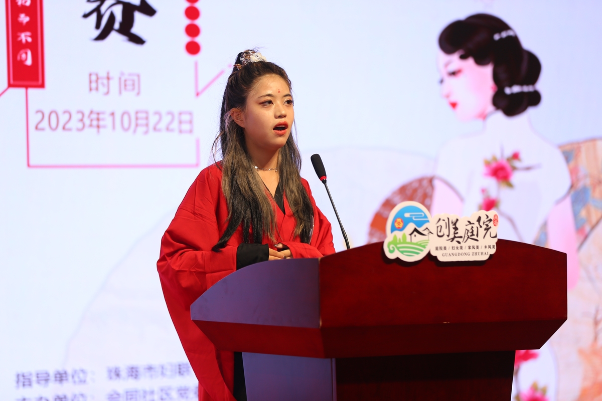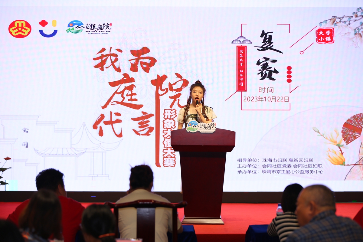 接下来,活动进入复赛环节,晋级20强的参赛选手们依次登台亮相,向专业评委和现场嘉宾们介绍了精心拍摄的“创美庭院”视频以及参与“创美庭院”巾帼行动心得体会,来自北师大珠海校区、北师大-浸会大学联合国际学院、北理工珠海学院等高校师生化身“创美庭院代言人”,讲述着她们助力会同古村乡村振兴发展的“巾帼有为故事”。