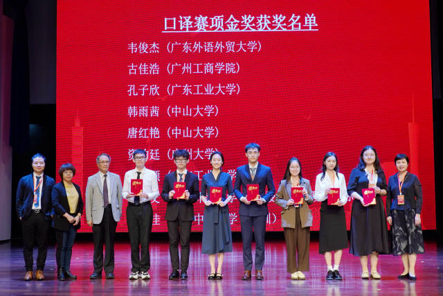 口译赛项金奖获奖学生上台领奖。南方+冉小平 拍摄