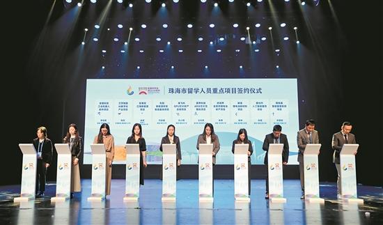 近年来,珠海大力推进科技创新强市、人才强市建设,吸引了一批又一批留学人员投身珠海创新创业,推动珠海科技创新不断取得新成果。当天的活动以“留学报国·智汇湾区”为主题,20个留学人员重点项目签约落户珠海,涵盖智能制造、新能源、生物医药和医疗器械、数字经济等战略性新兴产业,项目创始人均为留学归国人员的杰出代表。