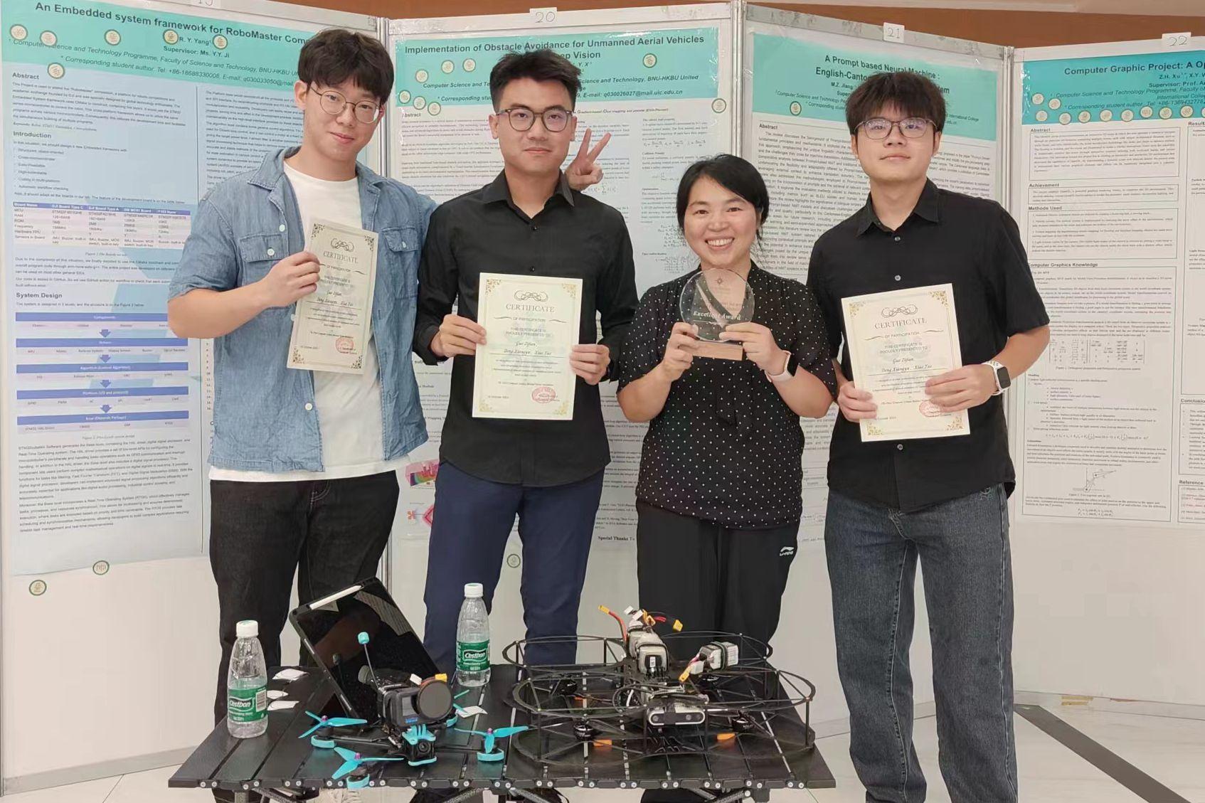 北师港浸大(UIC)纪燕燕老师 (右二)与学生在2023年计算机类海报展