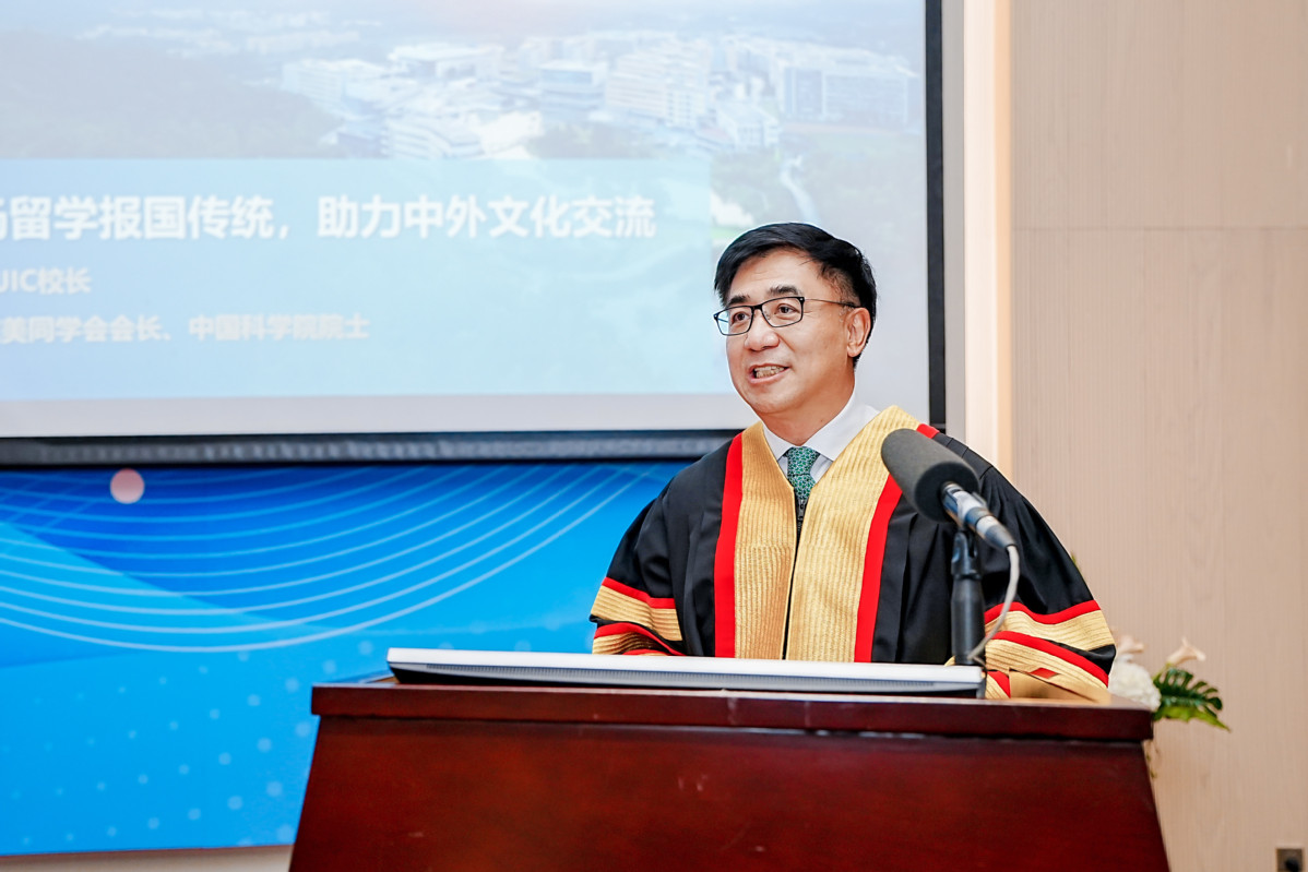 “近代以来,珠海得风气之先,开启留学文化先河,走出了‘中国留学生之父’容闳、中华民国首任内阁总理唐绍仪、清华学校首任校长唐国安等一大批优秀人才,敢为人先的精神特质孕育出传承百余年的留学文化。”中国科学院院士、市欧美同学会会长、UIC校长汤涛以《弘扬留学报国传统,助力中外文化交流》为主题进行演讲,从“留学报国传统的历史”“留学人员的使命与责任”“中外文化交流的历史与意义”“留学报国与中外文化交流”等方面展开分享。