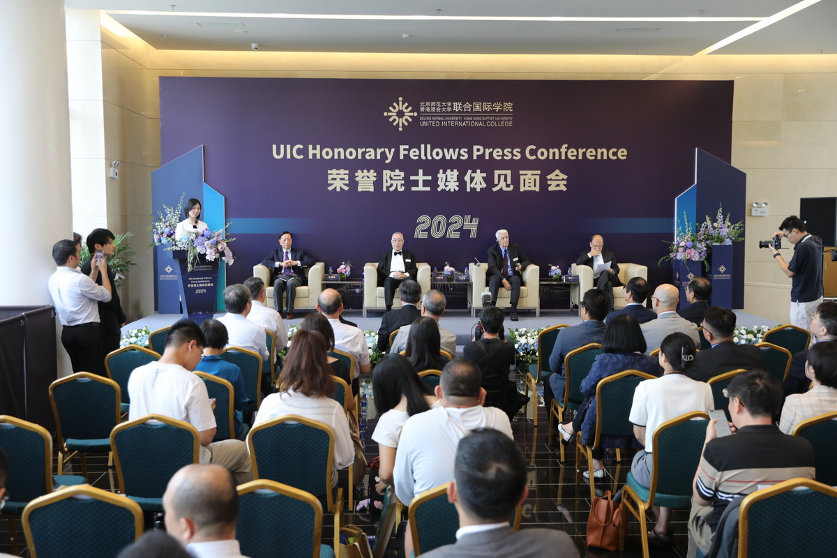 6月20日,北京师范大学-香港浸会大学联合国际学院(下称“UIC”)举办荣誉院士媒体见面会。中国科学院院士、发展中国家科学院院士陈十一,中国意大利商会前主席、古魏博物馆创始人古楚璧,中国钢琴家、音乐教育家刘诗昆以及香港浸会大学原校长、北京师范大学香港浸会大学联合国际学院创校校长吴清辉被授予荣誉院士称号,以此来表彰他们对科学、教育、商业、文化事业的贡献以及对学校的支持。