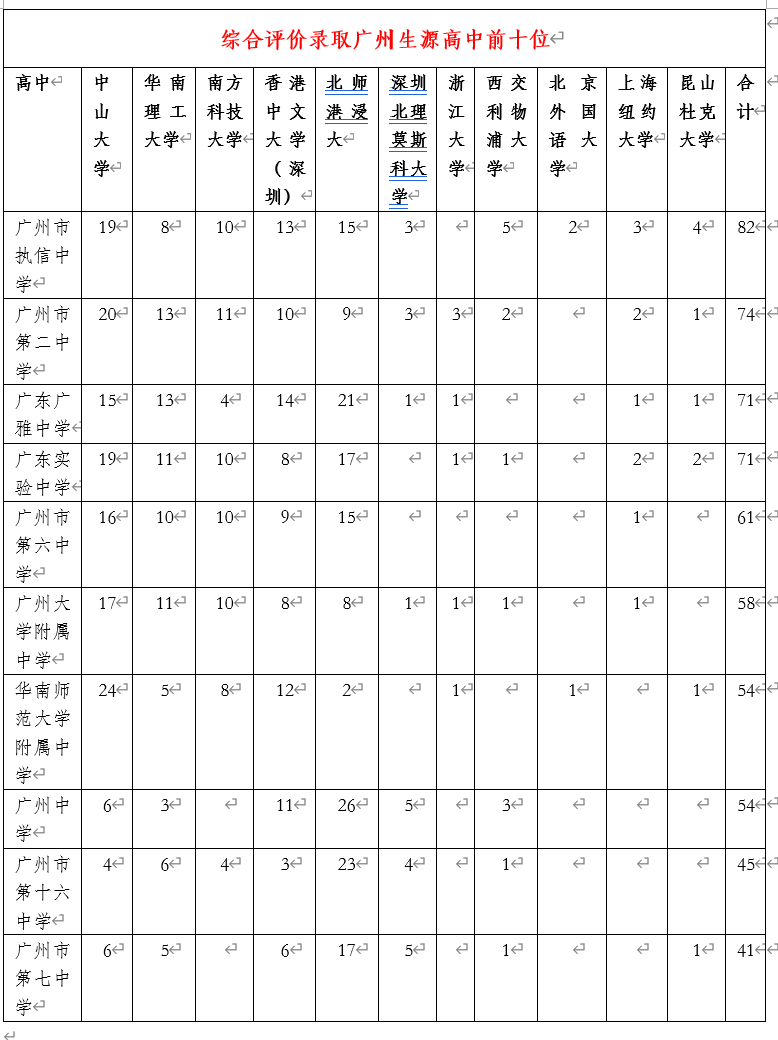 其中广州贡献生源978人,占总量约34%,获北京师范大学—香港浸会大学联合国际学院录取343人,获中山大学录取196人,获香港中文大学(深圳)录取126人,获华南理工大学录取115人,获南方科技大学录取79人。从中山大学和华南理工大学的录取人数来看,广州生源共311人,位居省内第一。
