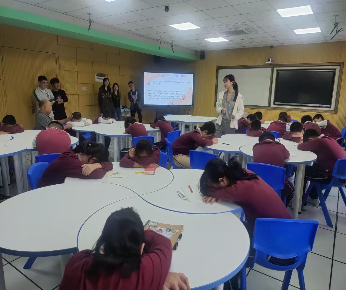 此外,大学生志愿者代表还分组深入到孩子当中,分享深呼吸、倾诉、转移注意力和改变认知等情绪调节的小技巧。