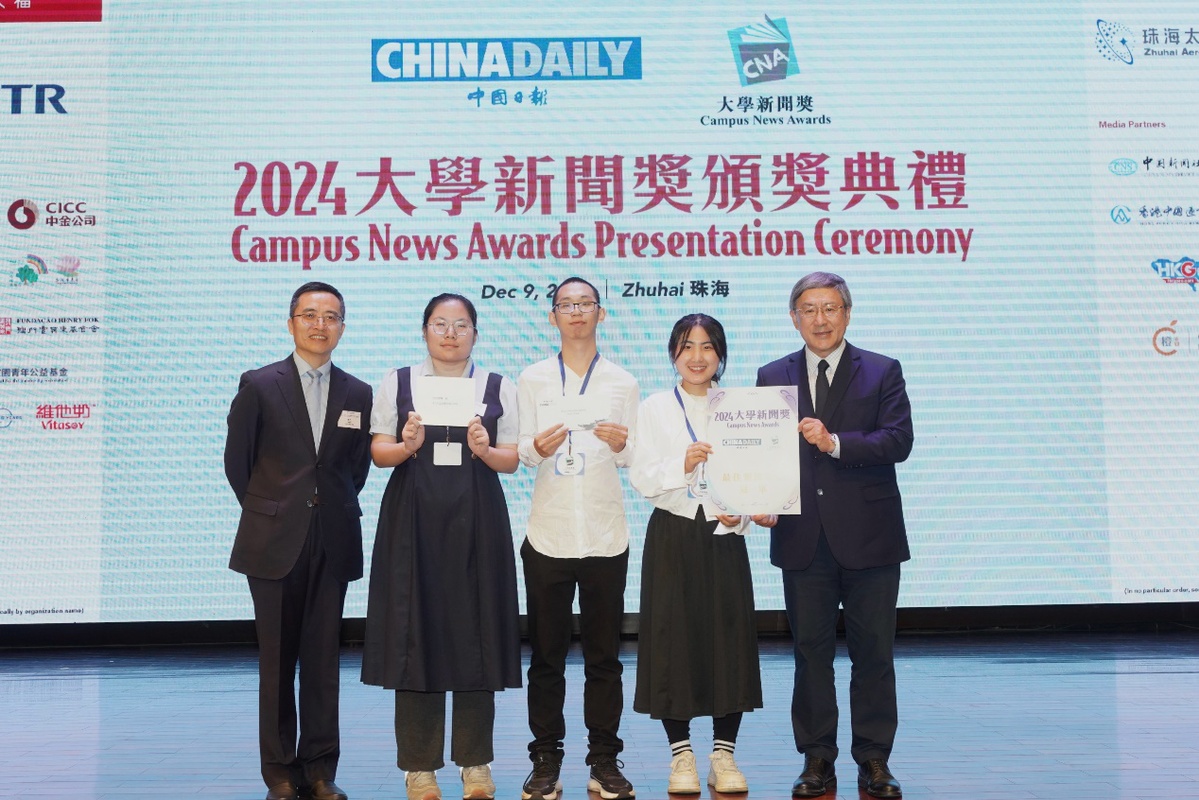 由中国日报主办的2024大学新闻奖颁奖典礼于12月9日在北京师范大学-香港浸会大学联合国际学院(UIC)举行。香港特别行政区政务司副司长卓永兴、北京师范大学-香港浸会大学联合国际学院校长陈致、周大福珠宝集团董事总经理黄绍基现场致辞,中国日报社副总编辑兼香港版总编辑周立致欢迎辞,香港迪士尼乐园传讯及公共事务副总裁黎珮珊在中场发表演讲。今年,大学新闻奖组委会还于颁奖典礼前后组织师生参访团,到周大福顺德匠心智造中心及珠海太空中心参访交流,深入了解大湾区的商业与科技发展文化。