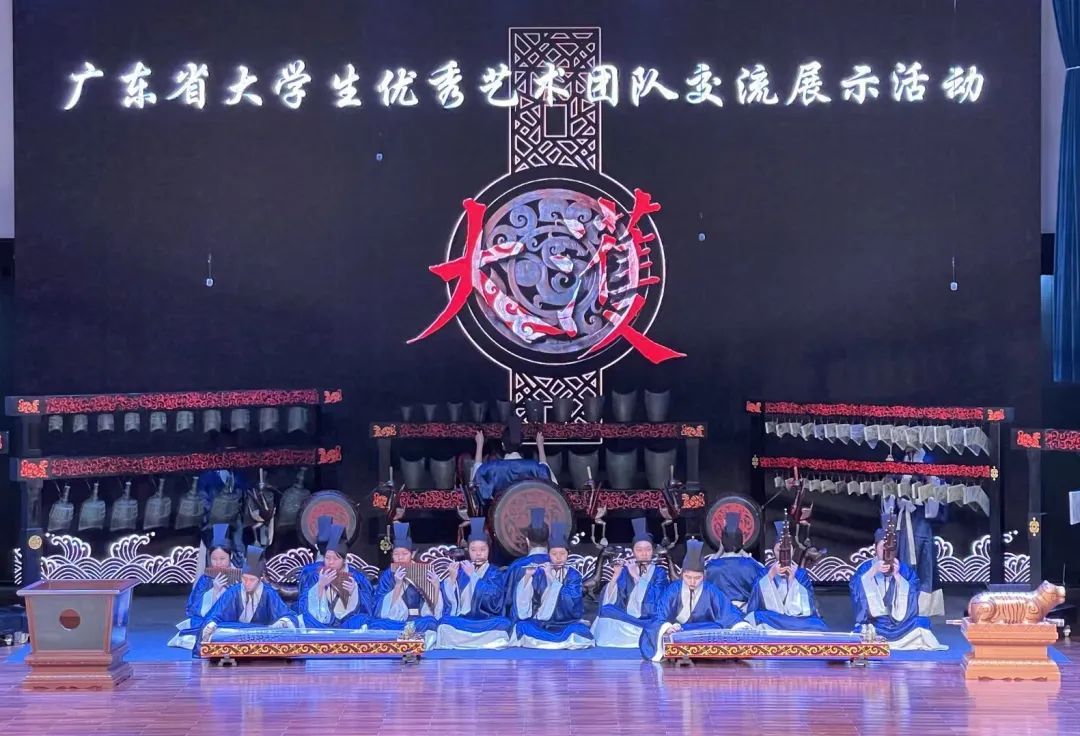 于卓涵(左四)参加广东省大学生优秀艺术团队交流展示活动,《大濩》荣获乐器类甲组二等奖
