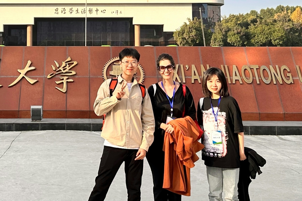 周子骞(左)与Malila Prado博士(中)在西安交通大学参加学术会议