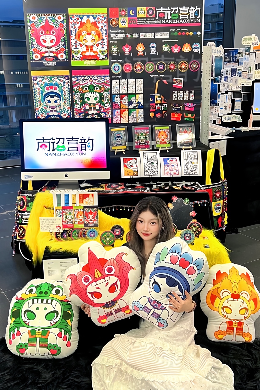 “国青杯”的参赛经历让黄子夕意识到我国非遗传统文化传承面临的困境,也给她的毕业设计项目(FYP)带来启发。黄子夕的FYP是以大理白族非遗文化为主题的视觉识别设计,通过对白族的扎染、瓦猫、甲马、服饰等非遗文化进行视觉元素提炼与现代创新设计,向人们展示白族非遗文化的魅力。她期待传统文化能融入现代潮流,重回大众视野。自己能够通过所学为中国非遗文化的活态传承贡献一点力量。她非常感谢导师黄小薇博士在专业课程及FYP的指导和帮助。
