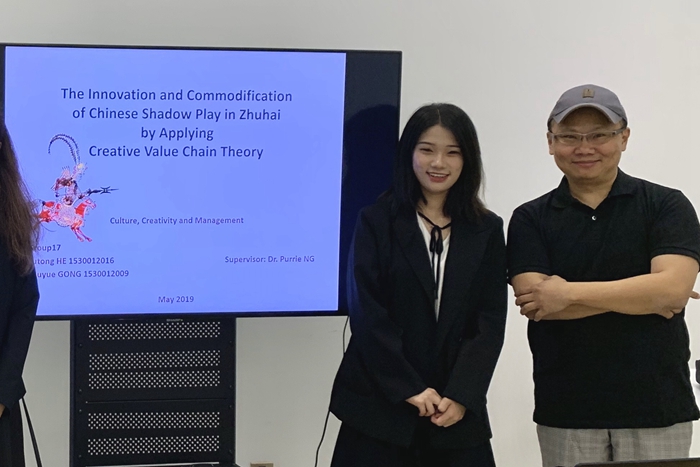 贺雨桐的毕业研究项目主题是“运用创新价值链理论对珠海皮影戏产业进行创新与商品化”。她说:“如今,皮影文化正在流失它的观众,我们希望这些传统文化能够吸引到更多的年轻人群体,使得皮影文化以一种迎合现代发展的方式传承下去,而不仅仅是保留原来传统的表演。”