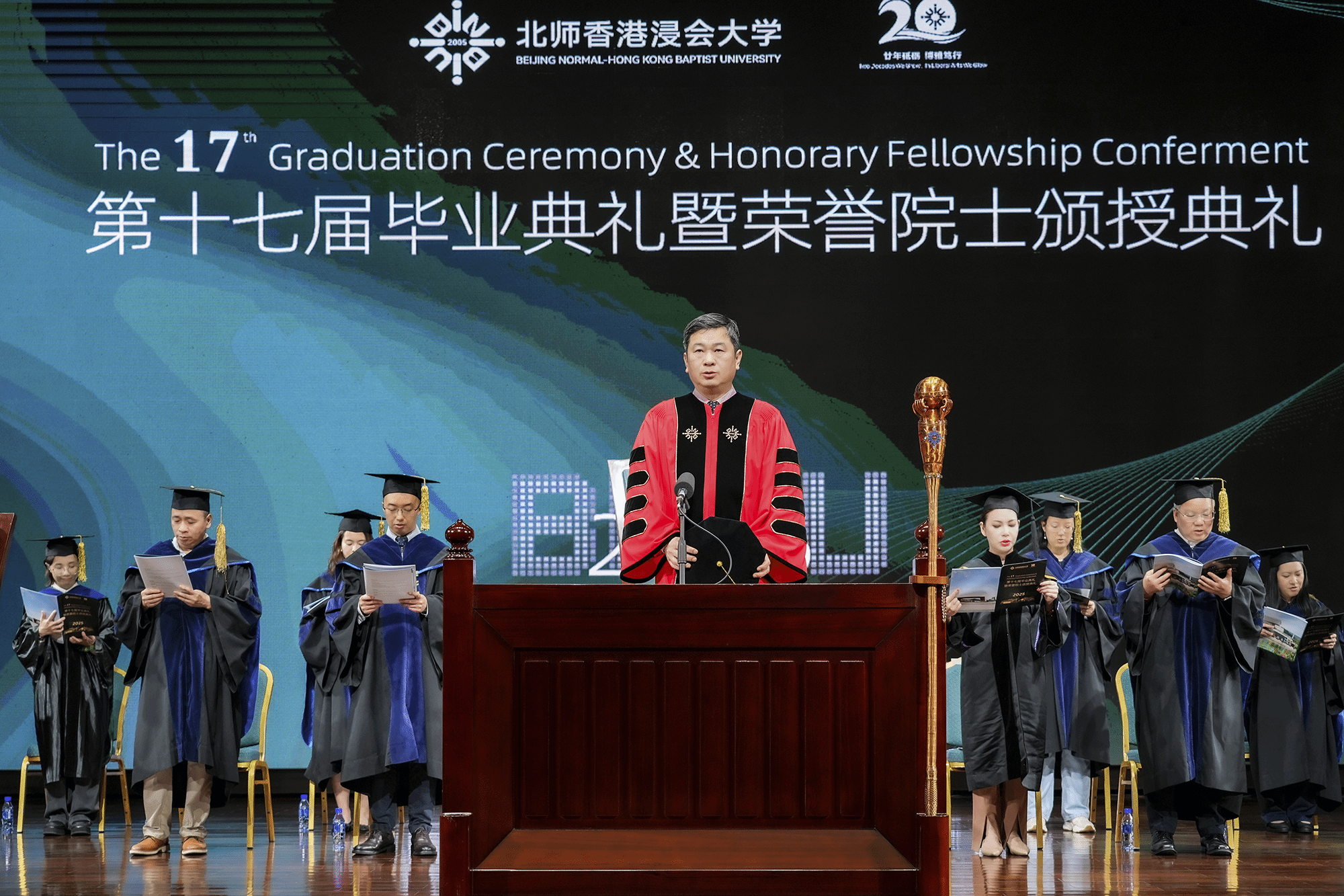 2025年6月7日,在北师香港浸会大学(BNBU)第十七届毕业典礼暨荣誉院士颁授典礼上,校长陈致教授以三个关键词和三位校友的故事,向毕业生们阐释了BNBU赋予学子们的深刻烙印——选择·钻研·创意。致辞视频和全文如下: