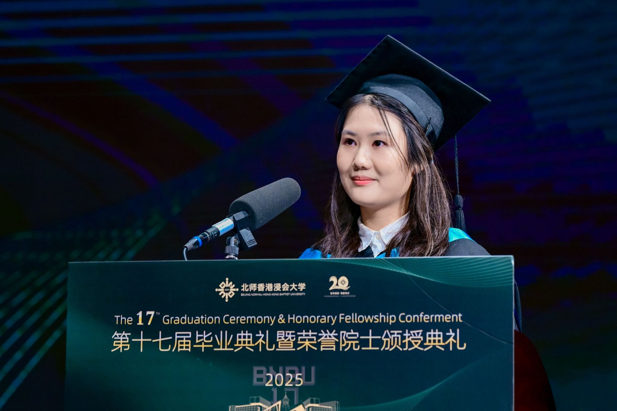 在毕业季的聚光灯下,七位来自不同专业、拥有独特经历的2025届毕业生代表走上台前,分享了他们在北师港浸大这片创新沃土上汲取的养分、经历的蜕变与收获的成长。