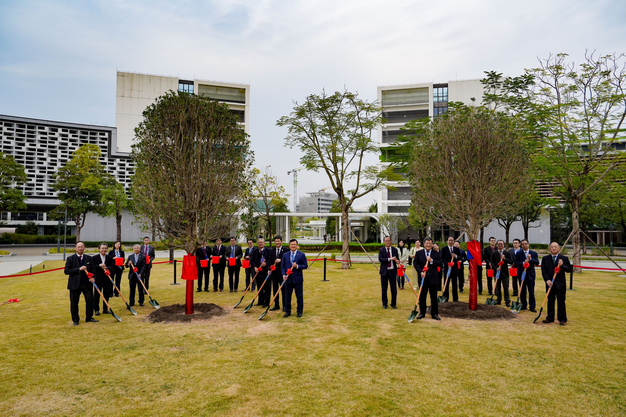 携手同行,植木树人。今天,立德垂范桂(北师大赠)与笃信力行桂(浸大赠)植于二期校园中轴线之上,象征深厚情谊