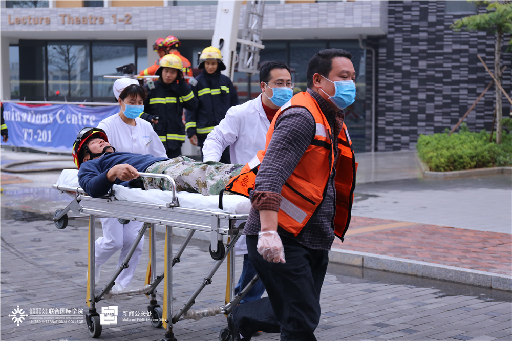除了军事训练和禁毒宣传、国家安全知识、消防知识等讲座,1月4日下午,珠海市消防局高新大队还组织官兵带领同学们开展消防应急疏散演练。演练假设学校T2栋教学楼五楼发生火灾,楼顶有一名学生被困。