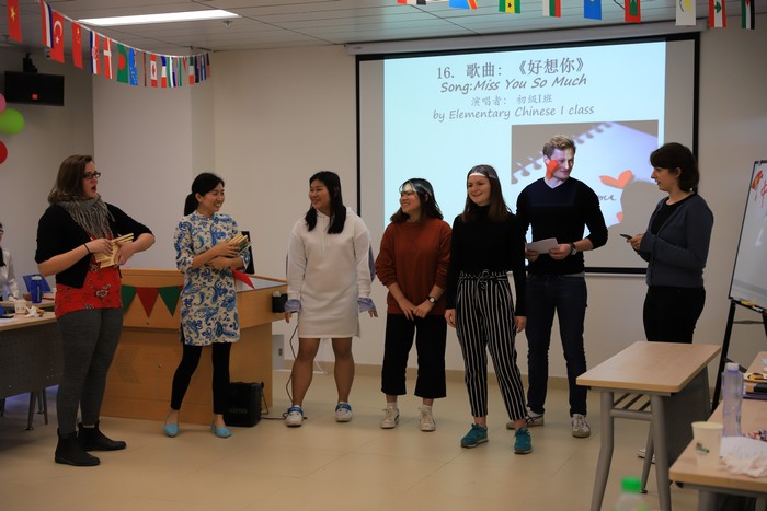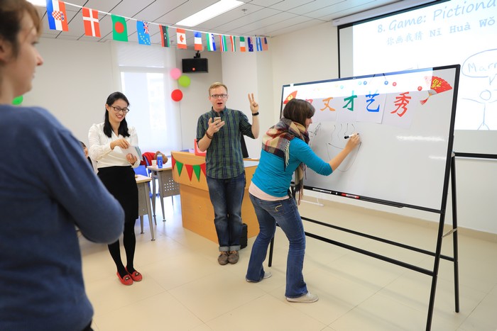 每学期汉语课结课时,外籍师生会通过游戏互动或表演的方式展示自己的学习成果。经过学习,外国朋友们收获不少呢。有的已经可以用汉语来描述自己的旅行过程和感受;有的可以用普通话朗诵诗歌;还有的可以通过画画来猜中文词语了。