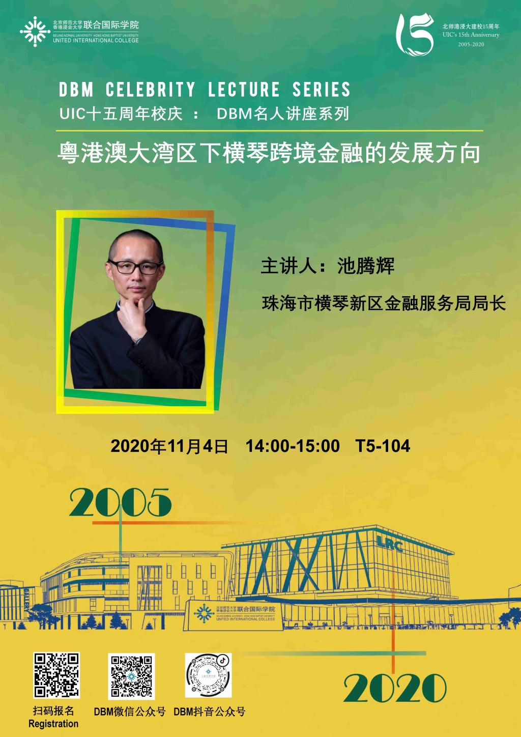 池腾辉,珠海市横琴新区金融服务局局长,中共党员,高级经济师。1995年毕业于北京大学光华管理学院国民经济管理专业,1999年获中南财经政法大学货币银行学专业硕士学位。历任中国人民银行珠海市中心支行(国家外汇管理局珠海市中心支局)办公室副主任、资产处置办副科长、货币金银科副科长、办公室(法律办、党委办)主任、国际收支科科长。2011年6月调任横琴新区财金事务局副局长,2015年4月转任横琴新区金融服务局副局长主持全面工作,2017年5月任横琴新区金融服务局局长,负责横琴金融工作。