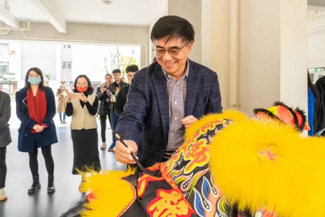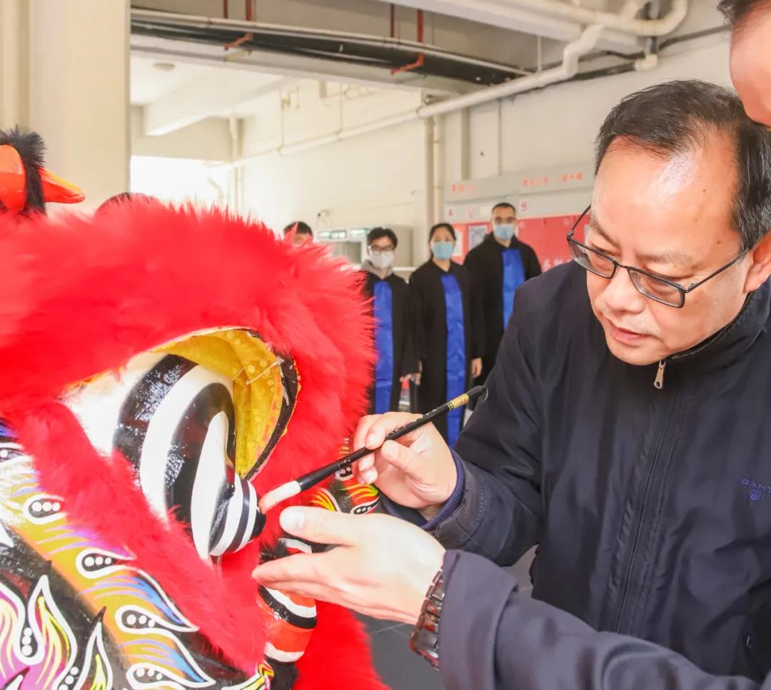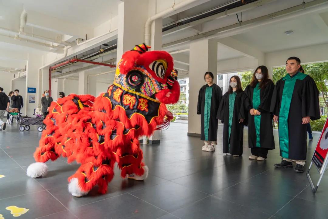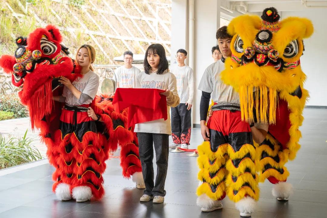 第十一届“UI狮慈善杯”的锣鼓在今天中午敲响,龙狮队同学舞着神采奕奕的醒狮来到苑舍楼下采青祈福。UIC校长、中国科学院院士汤涛教授,党委书记、副校长(行政)毛亚庆教授来到现场为醒狮点睛,并向师生送上新年祝福。