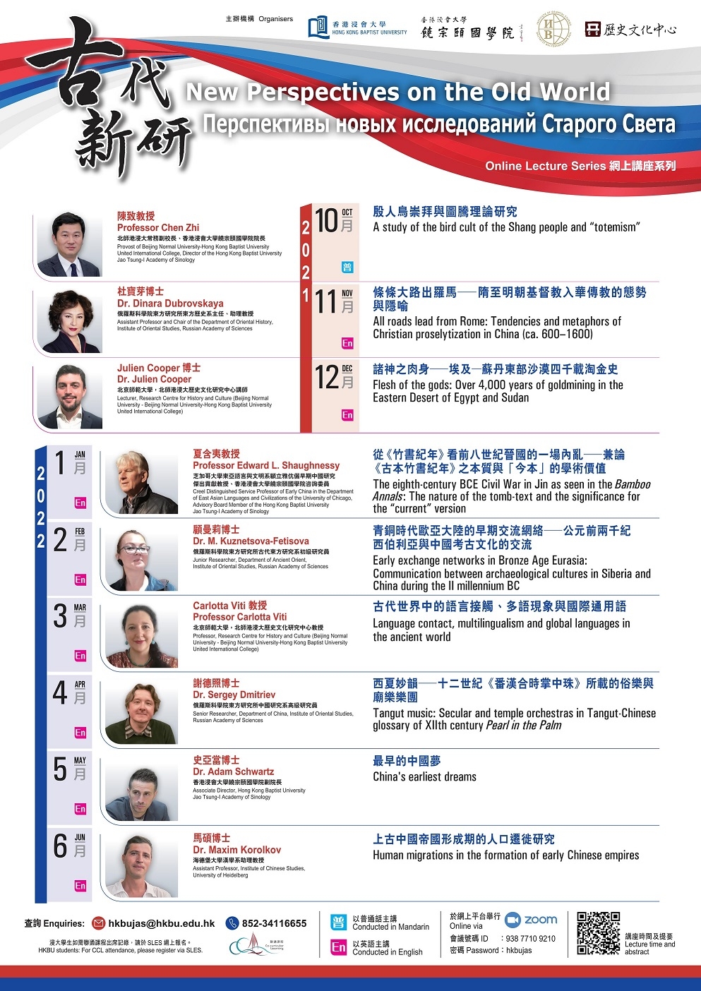 由香港浸会大学饶宗颐国学院、俄罗斯科学院东方研究所和北师港浸大(UIC)历史文化研究中心共同举办的“古代新研”系列线上讲座于10月22日迎来首讲。UIC常务副校长、UIC历史文化研究中心主任、香港浸会大学饶宗颐国学院院长陈致教授以“殷人鸟崇拜与图腾理论研究”为题分享了自己的研究。