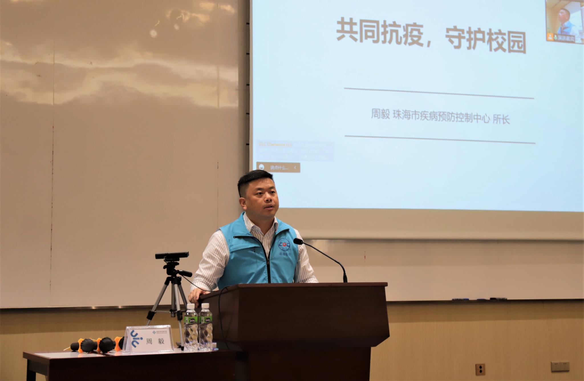 4月2日下午,珠海市疾病预防控制中心防制所所长、主任医师周毅来到UIC,为师生们带来了关于新冠疫情形势与防控的讲座。本次讲座是“形势与政策”系列讲座之一,采取线下和线上同时进行的方式。北师港浸大党委书记、副校长毛亚庆教授主持讲座。