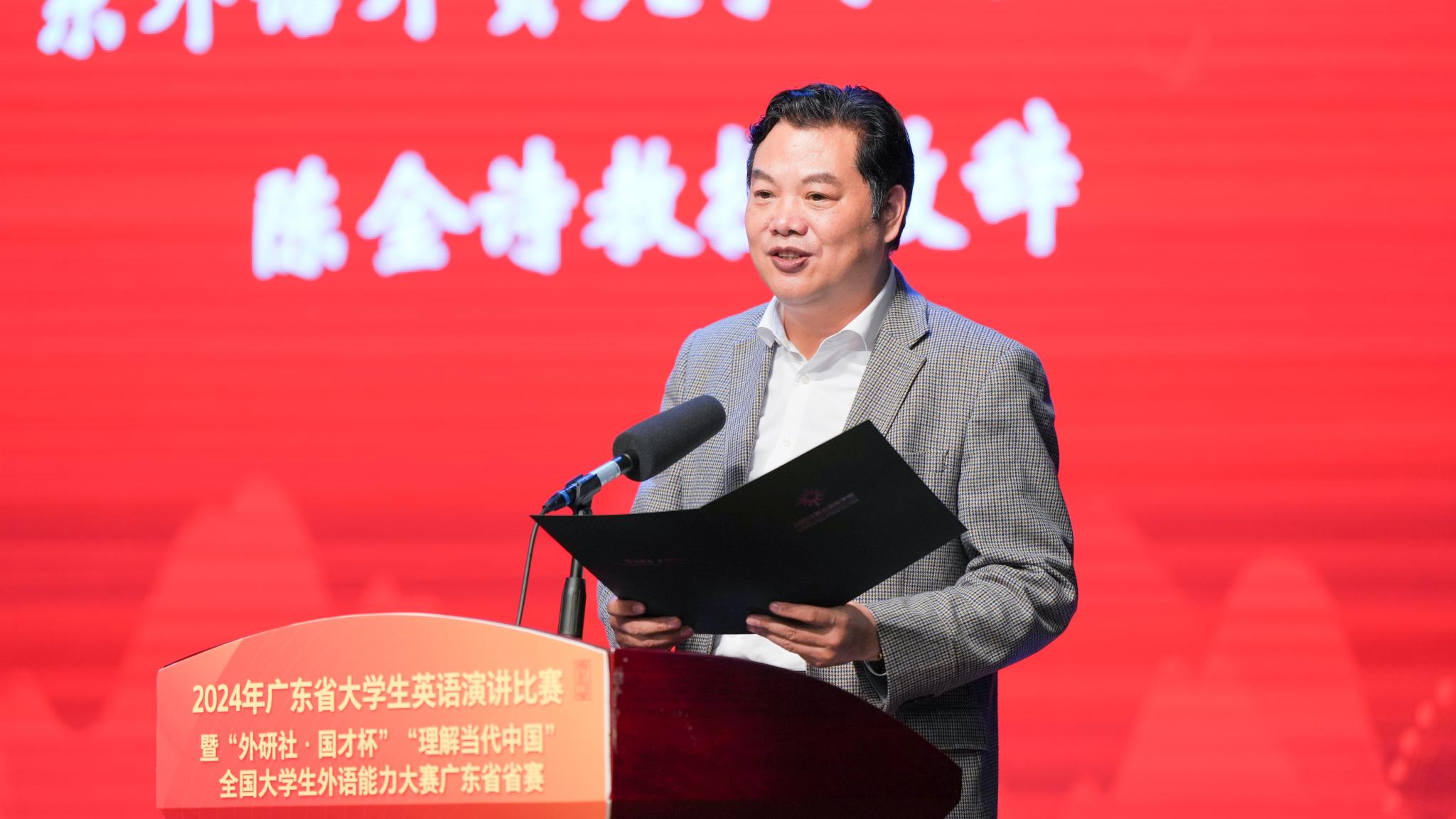 The Secretary General of the Advisory Board for Guangdong College Foreign Language Teaching and the Vice President of the Faculty of English Language and Culture of Guangdong University of Foreign Studies Prof Wu Zhuang, said that Guangdong is a highland for foreign language education and talent cultivation, and he hoped the contestants could shoulder the historical mission of inheriting Chinese culture and spreading the voice of China.