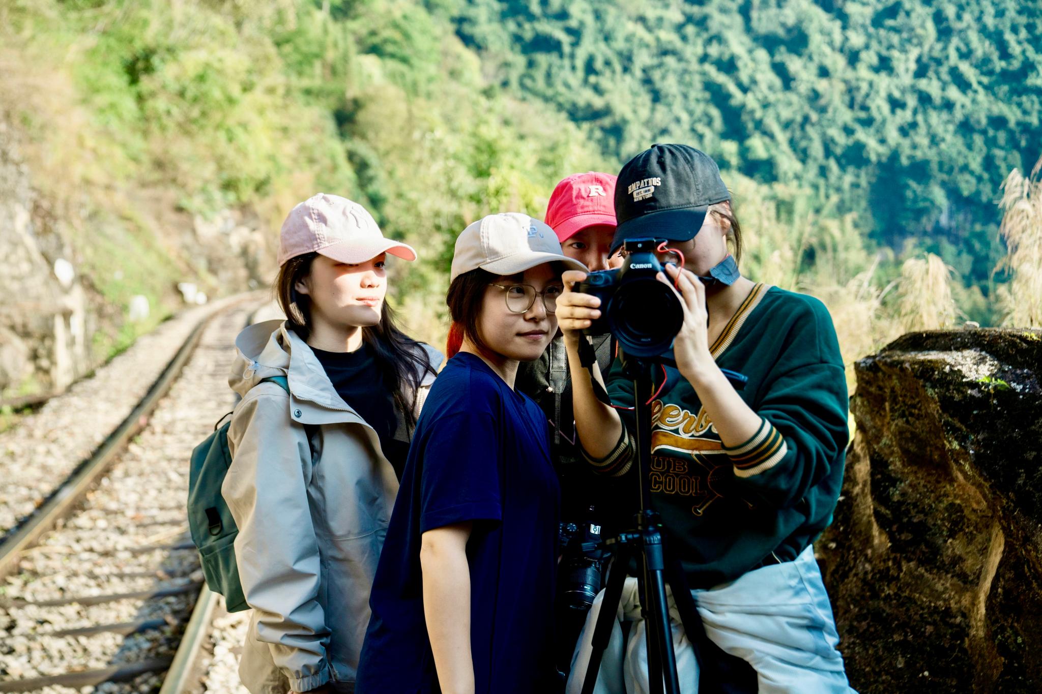 Cheng Yiran (first from right) films documentary with friends