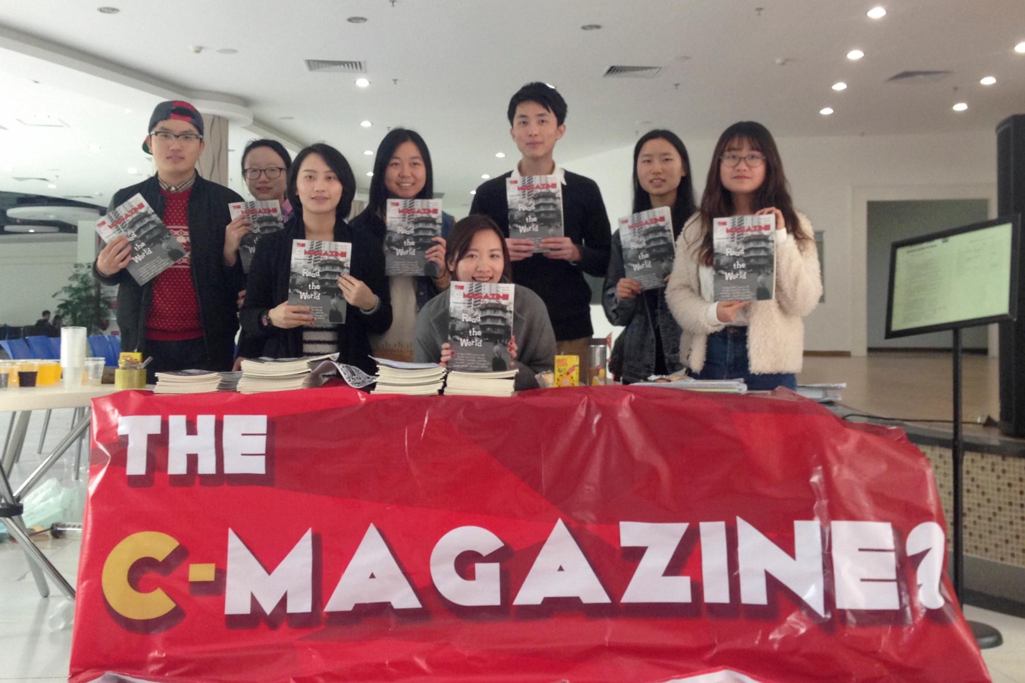 Zhan Xiaoman (front row, centre) edited a professional magazine with classmates at UIC