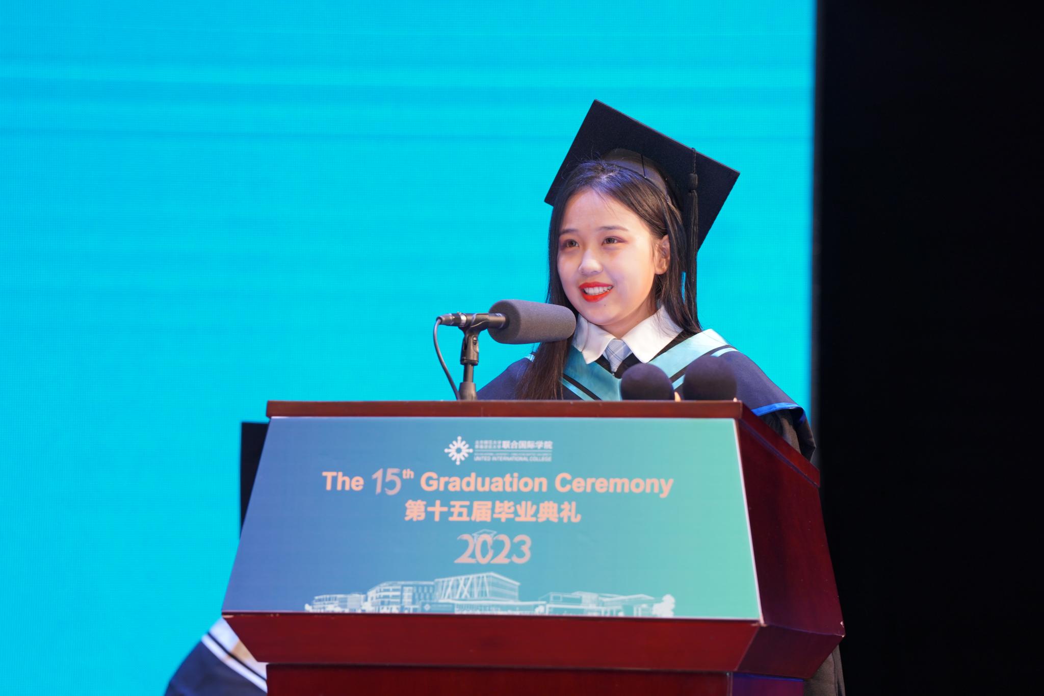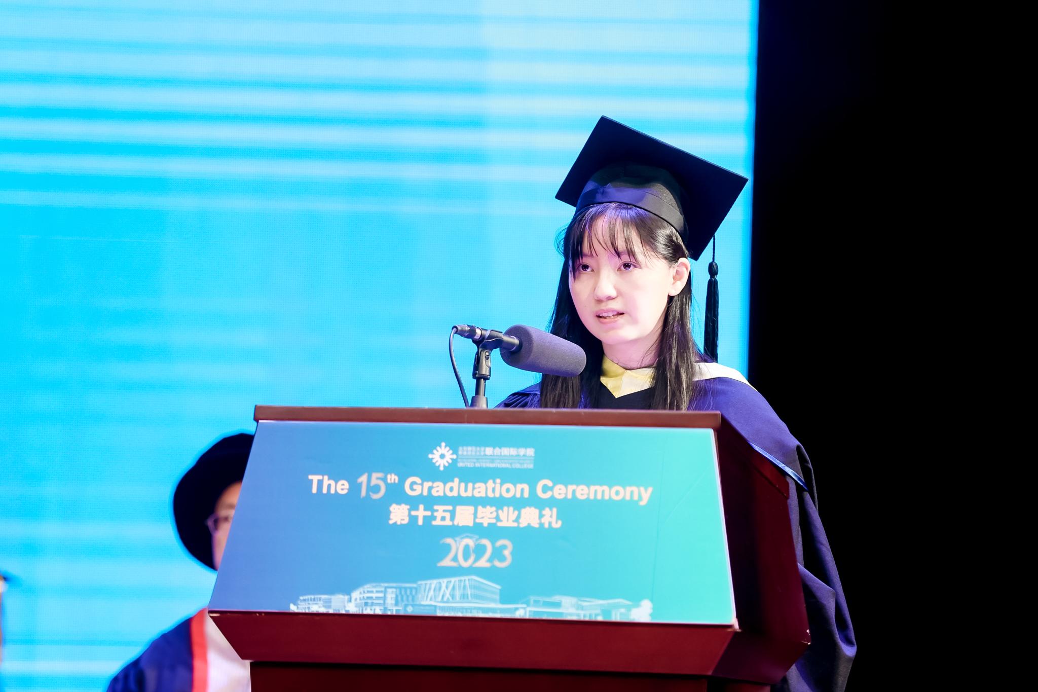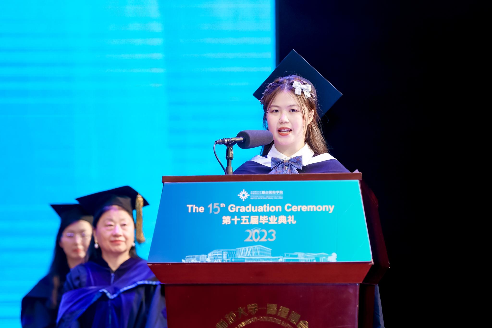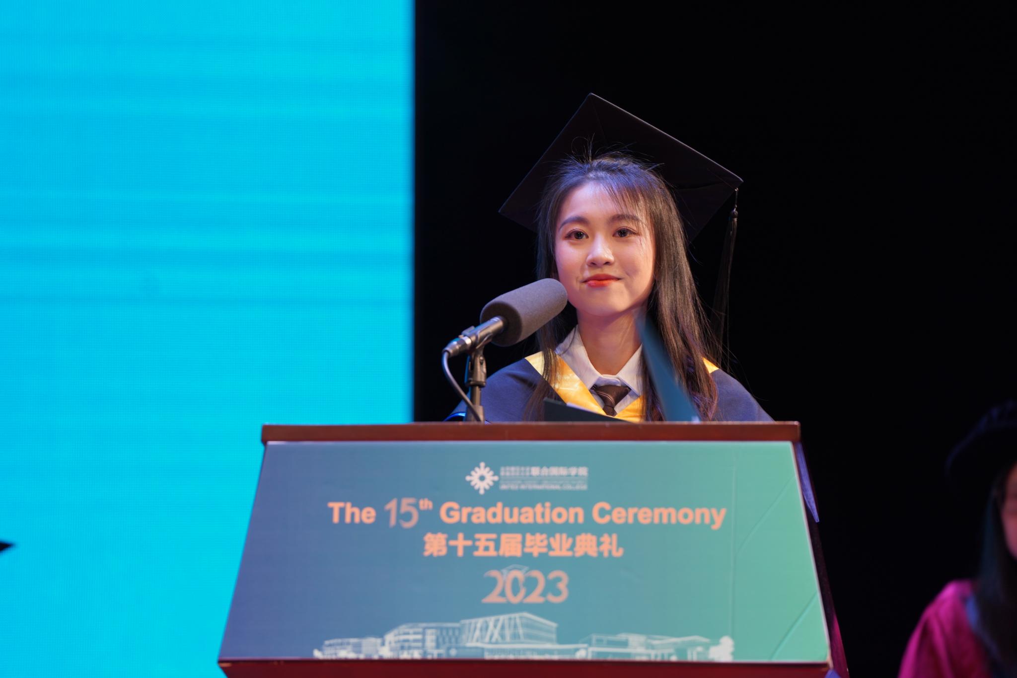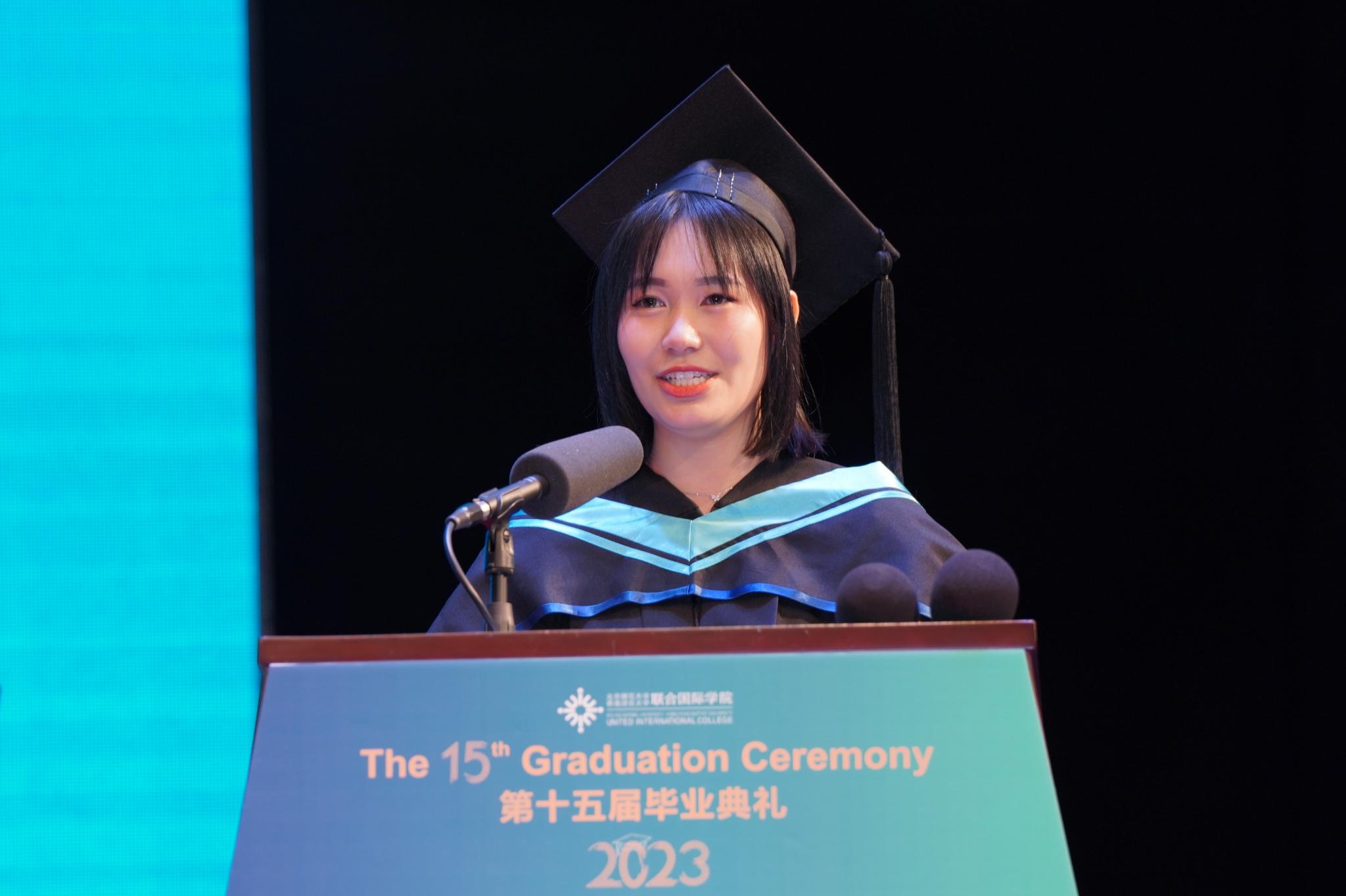 Huang Shiyu of the Graduate School expressed her gratitude to UIC's liberal arts education and believes that her alumni will excel in the new era. (Read more: Graduation Speech - Huang Shiyu)