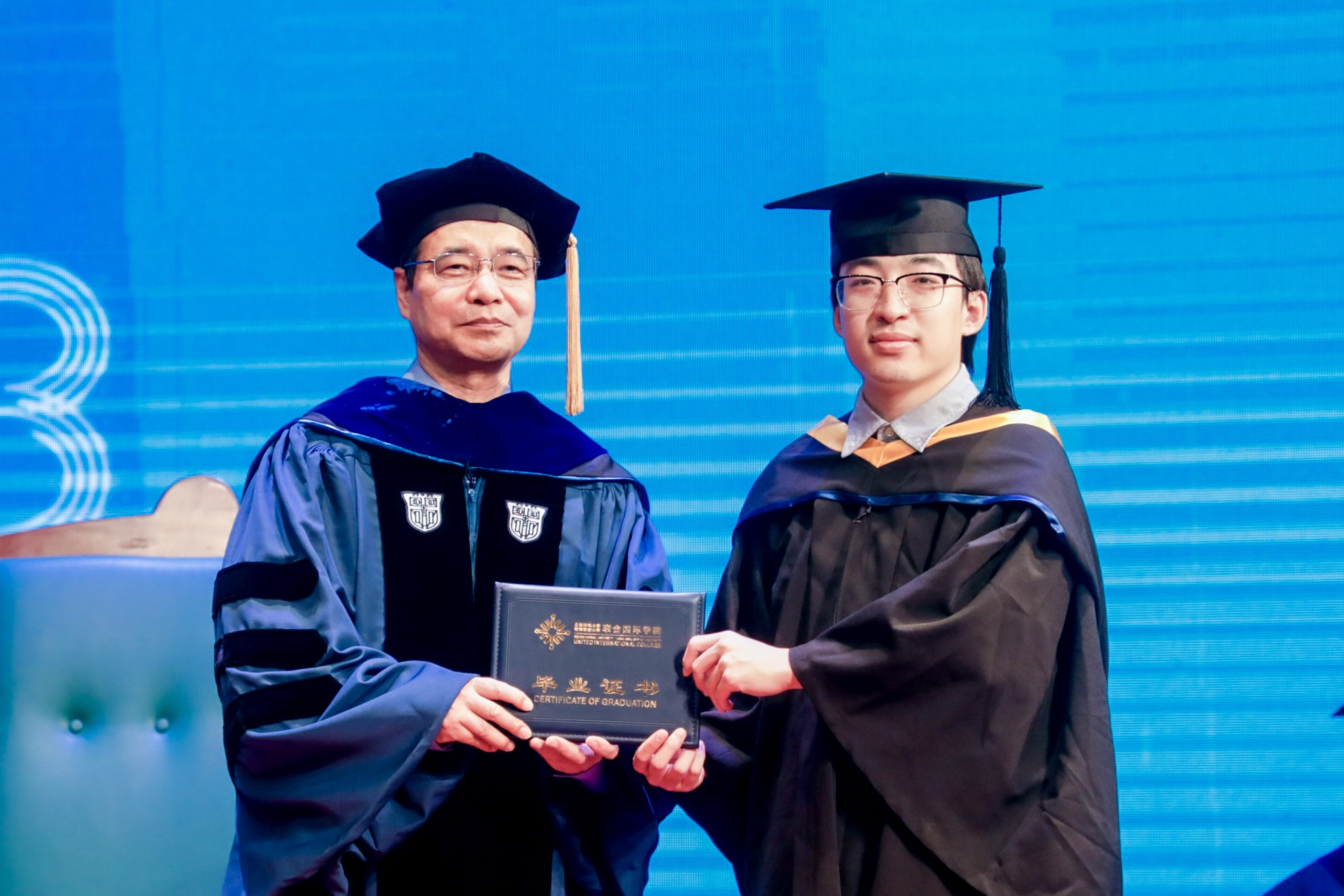 Prof Tang Tao presents a certificate of graduation to a UIC graduate