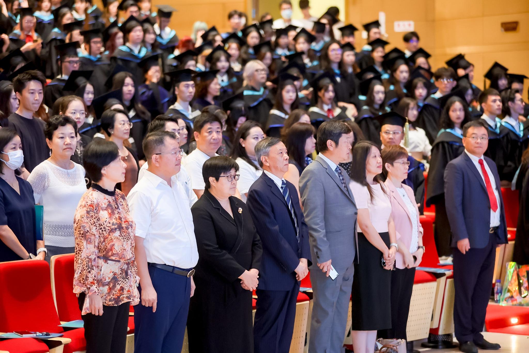 Executive Vice-President of the University of Science and Technology of China Prof Pan Jianwei, Council and Court Chairman of Hong Kong Baptist University Dr Clement C.J. Chen, GBS, JP, and President and Vice-Chancellor of Hong Kong Baptist University Prof Alexander Wai, together with UIC President, Member of the Chinese Academy of Sciences and Fellow of the European Academy of Sciences Prof Tang Tao, shared their high hopes towards UIC's graduates.