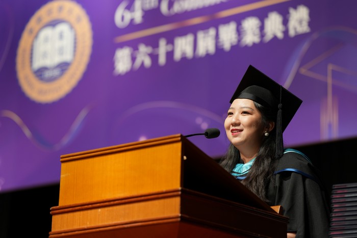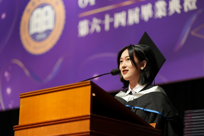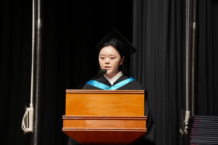 Graduate representatives were also invited to speak at the ceremony. Liu Wanru of the Department of Culture, Creativity and Design, Liu Peiqi of the Department of Accounting, Dong Yanhong of Master of Arts in Communication-Media Management Concentration, and Liu Zhen of Master of Arts in Interactive Media Studies Concentration took the stage to share their experiences in academic and personal growth during their time at UIC. They thanked UIC's liberal arts education for nurturing their abilities and self-confidence, expanding their horizons, and harvesting their dreams while being a better self.