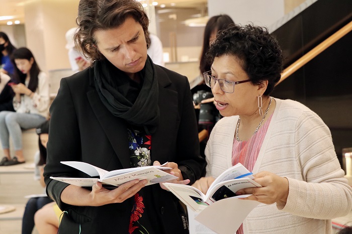 DHSS Lecturer and Coordinator of CFLC, Dr Arum Kim, reading the Korean version