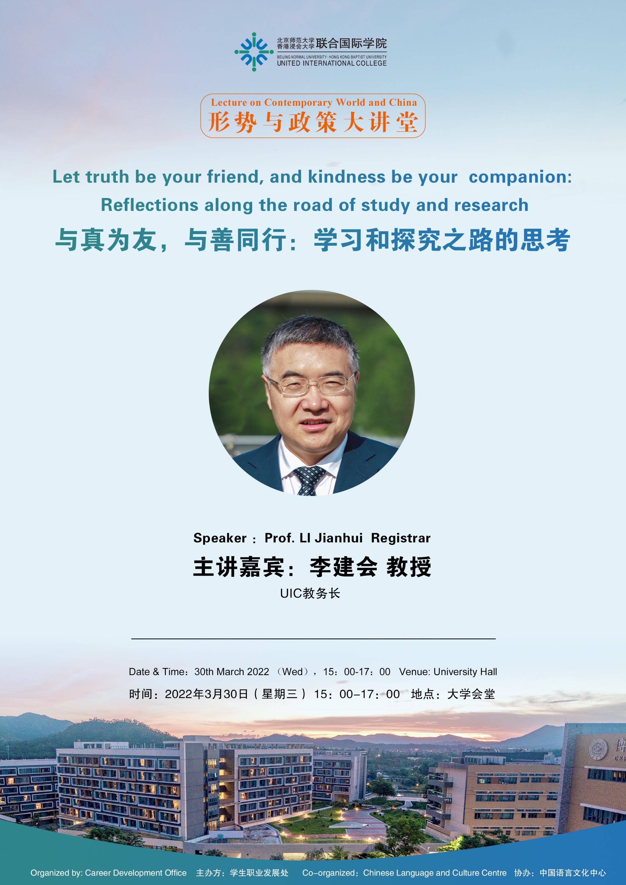 It is our honor to have invited Professor LI Jianhui ( Registrar) to share his fruitful life and career experience with us! The lecture will be delivered on 30 March, 2022. You are cordially invited to join us.