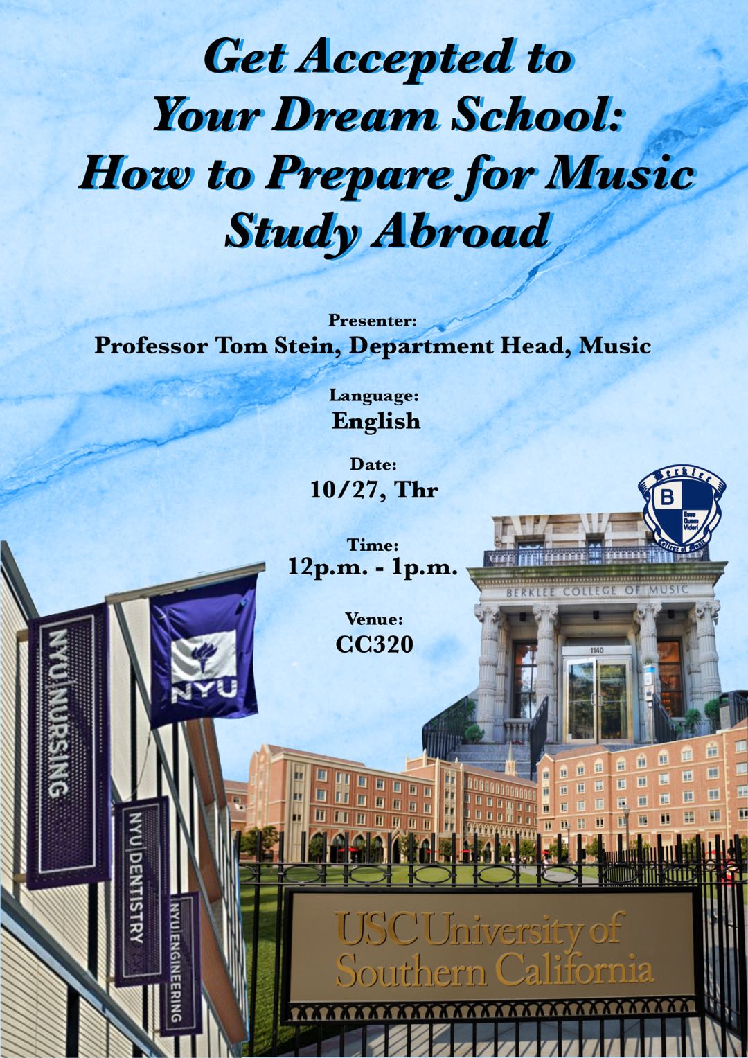 Title : 【SCC-MUS Reading Week Workshop】 Get Accepted to Your Dream School: How to Prepare for Music Study Abroad