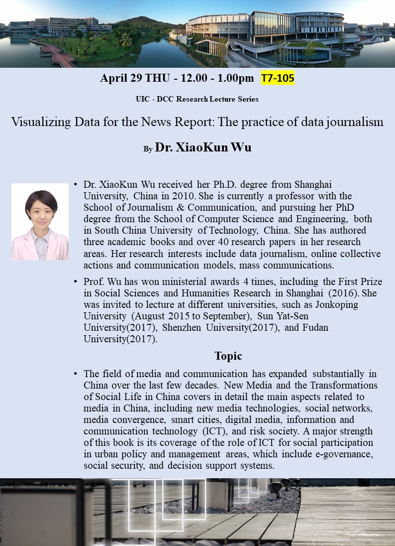 Dr. XiaoKun WU received her Ph.D. degree from Shanghai University, China in 2010. She is currently a professor with the School of Journalism & Communication, and pursuing her PhD degree from the School of Computer Science and Engineering, both in South China University of Technology, China. She has authored three academic books and over 40 research papers in her research areas. Her research interests include data journalism, online collective actions and communication models, mass communications.