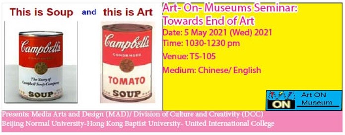 Art-On-Museums Seminar aims to exchange up-to-date discourse and museum practices in the field of contemporary art, especially focusing on the art geography in-between Guangzhou-Shenzhen-Zhuhai-Great Bay Area, China from Alternative-Well Established-New-Branded museums. “ON” seems to be a common word in most contemporary art literacy such as Lucian Freud’s Thoughts “ON” Painting (1954), Sol Lewitt’s Paragraphs “ON” Conceptual Art Susan Sontag ’s “ON” Photography (1977), Damien Hirst’s “ON” the Way to Work (2001), Walter de Maria’s “ON” the Importance of Natural Disasters (2018), etc. Contemporary Art is “ON” Crisis that Gillick and Charlesworth critically comment on their thought Is this the End of Contemporary Art as We Know It? (ArtReview, 2020). Now it is our pleasure to have 4 museum practitioners, UIC alumni (Lynn, Jacey, and Vera) and Hermione from GDMoA, and share their experiences and extended trajectories to UIC students and staff.