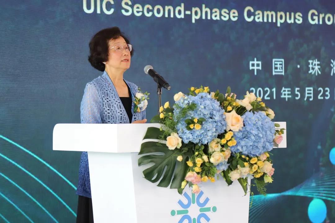 Dean of Yenching Academy of Peking University and Professor at the School of International Studies of Peking University, Professor Yuan Ming, said that she was honoured to witness the era of UIC's development. Eight years ago, Professor Yuan visited the Jinfeng Road campus of UIC, and a day before the groundbreaking ceremony, she gave a keynote speech at the Jintong Road campus (UIC's current first-phase campus). Furthermore, she has just witnessed the groundbreaking of UIC's second-phase campus. She highlighted that UIC is a unique college that genuinely serves the local community by bringing high-quality education.