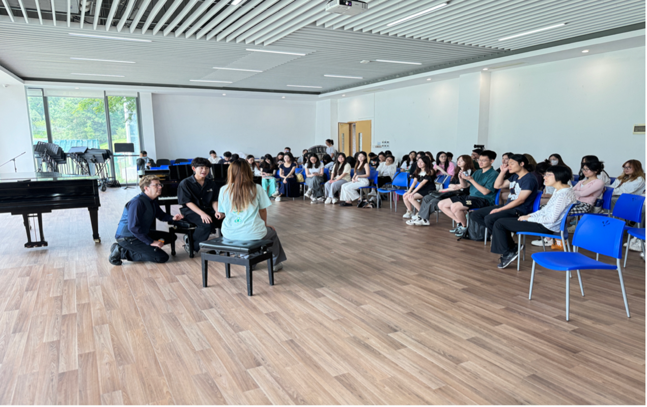 2024年5月8日,由文化创意学院音乐系主办的“让音乐表达乘上想象的翅膀”工作坊在音乐系CC129教学厅进行。来自美国波士顿伯克利音乐学院的瑞尼.斐斯特教授,主持了这场别开生面的音乐工作坊教学活动。有音乐系学生以及来自其他学院的老师学生共60余人参加。此次活动主题新颖、形式活泼,充满创意元素,深受同学欢迎。