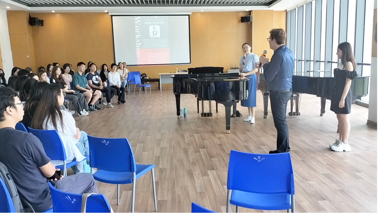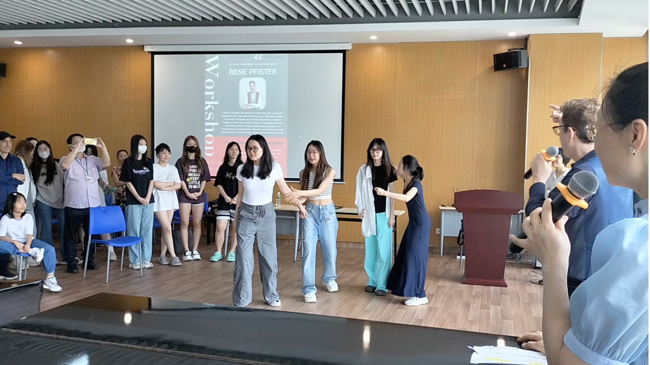 当天的活动围绕“探索集体戏剧游戏,提高对自身的感知和音乐的理解;培养舞台表现力,增强音乐演出的魅力;学习有效地接受和给予反馈,提升音乐表达能力”三个方面的内容展开。RENE教授采用美国的开放式教学模式,借助戏剧游戏等创新方法,引领学生探索音乐表达的无限可能性,使同学们在轻松愉快的氛围中,感受到想象力给音乐表达所带来的美妙体验!