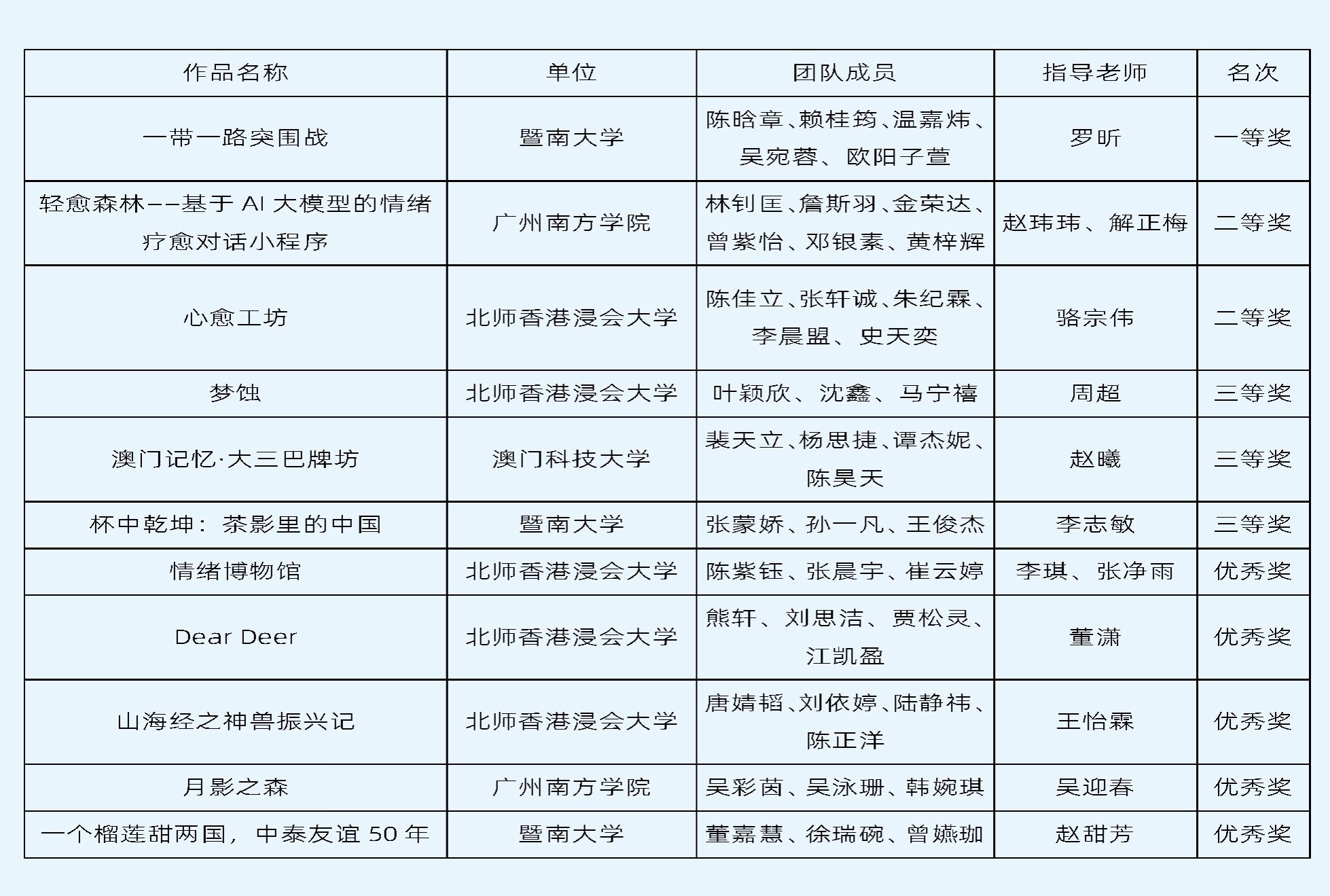 首届AIGC应用大赛港澳台及广东省赛区入围决赛获奖名单
