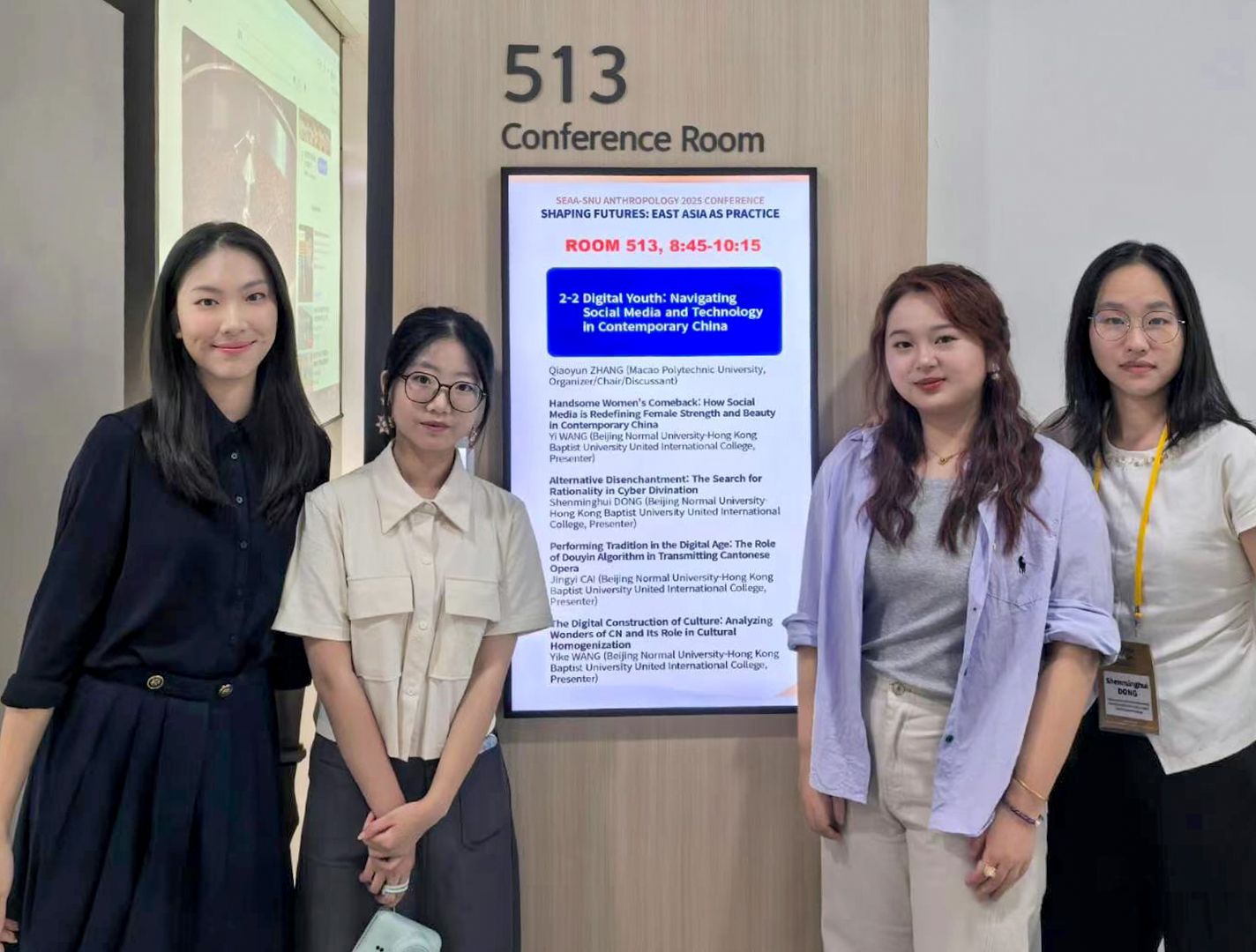 汪一(右二)和数字社会科学的同学们一起参加2025东亚人类学学会年会